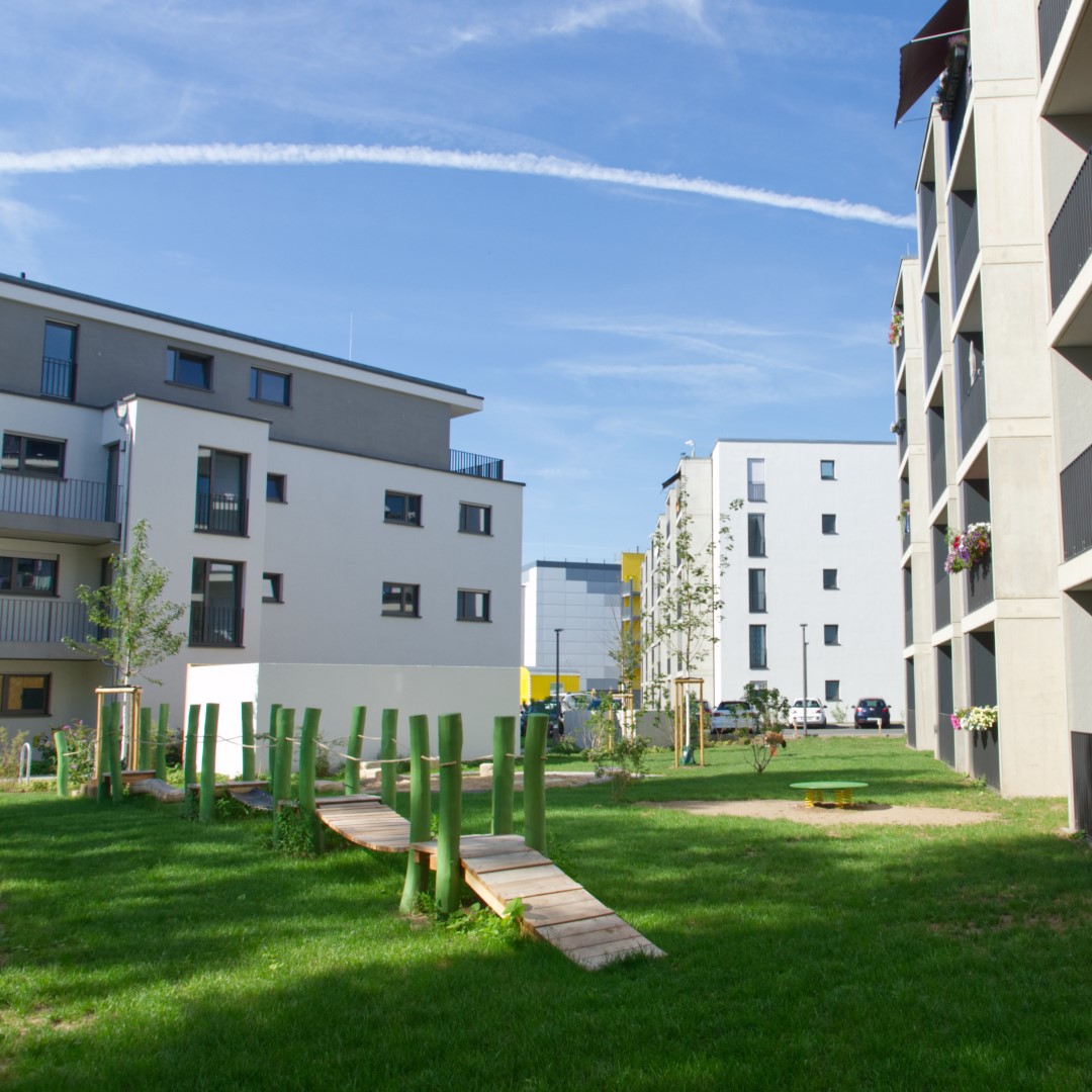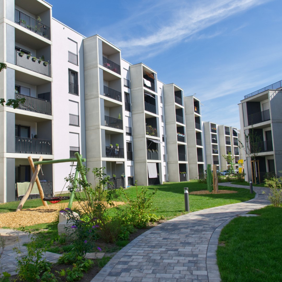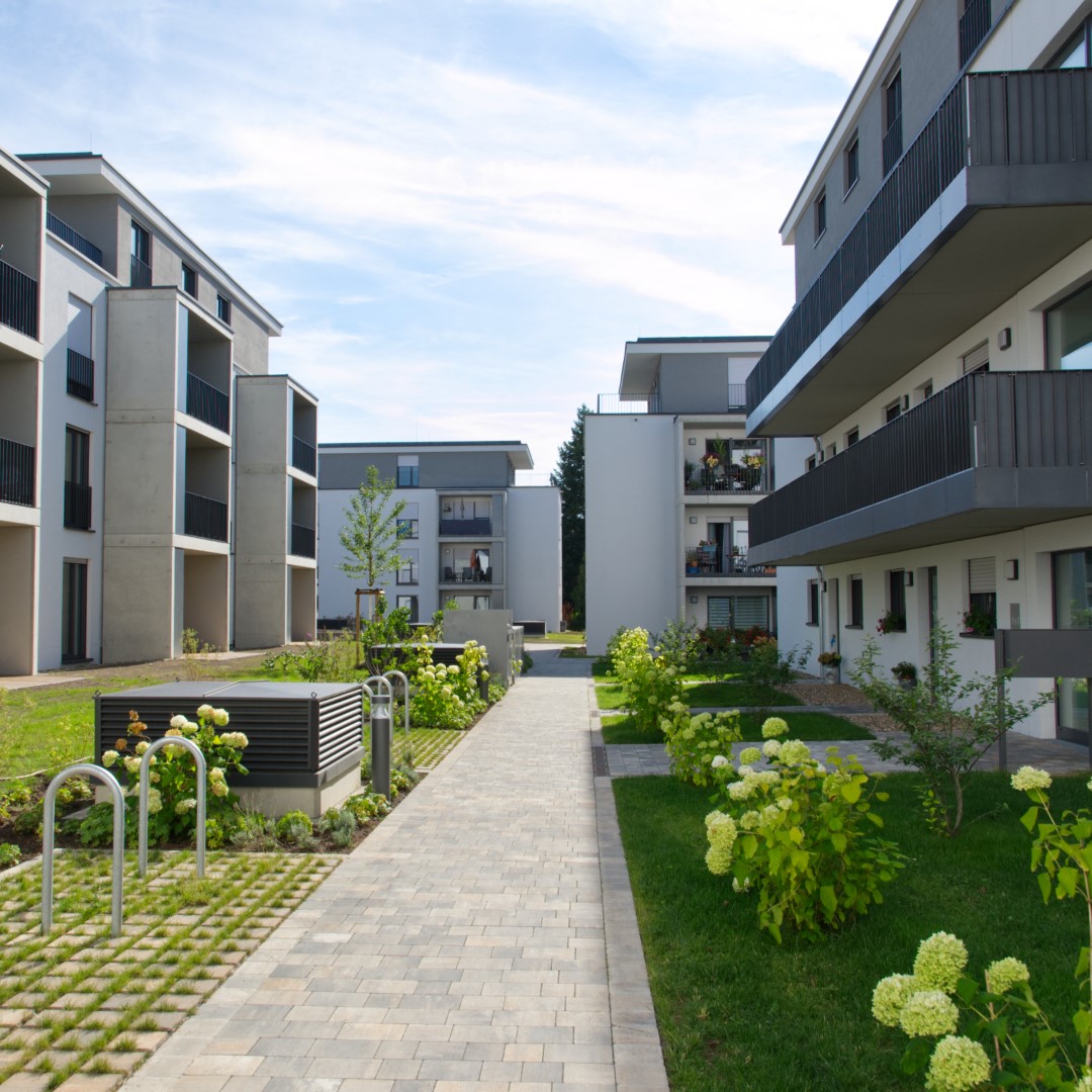 Um die zehn Wohngebäude auf dem 18.500 m² Gelände der Kalendergärten haben wir nahezu das gesamte Spektrum im Garten- und Landschaftsbau umsetzen können.