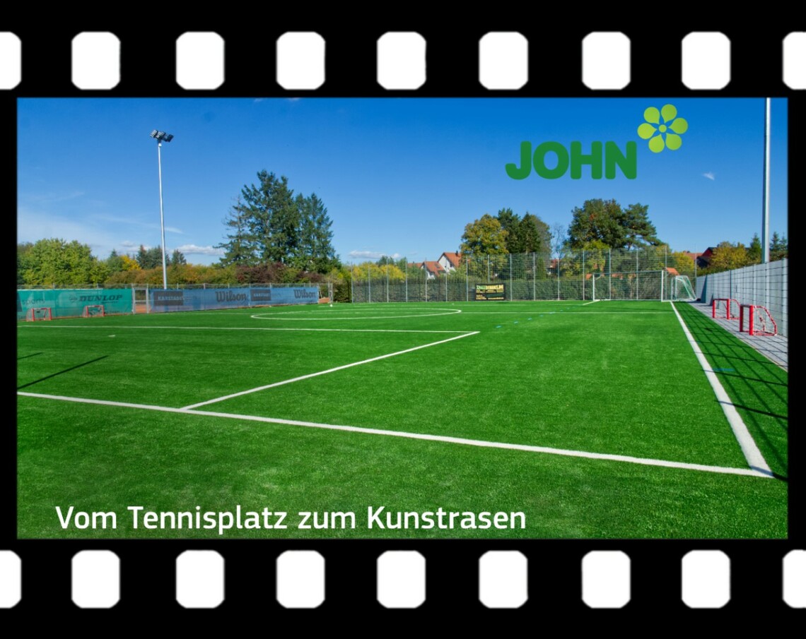 In 4 Wochen Bauzeit haben wir einen ausgedienten Tennisplatz in ein schönes 2.100 m² großes Fußballfeld mit Kunststoffrasen verwandelt.