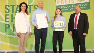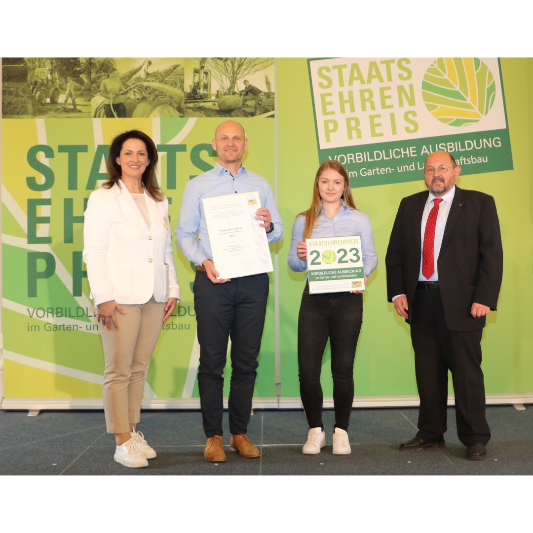 Bereits zum 3. Mal, nach den Verleihungen 2019 und 2021, freuen wir uns über den Staatsehrenpreis für eine vorbildliche Ausbildung im Garten- und Landschaftsbau.